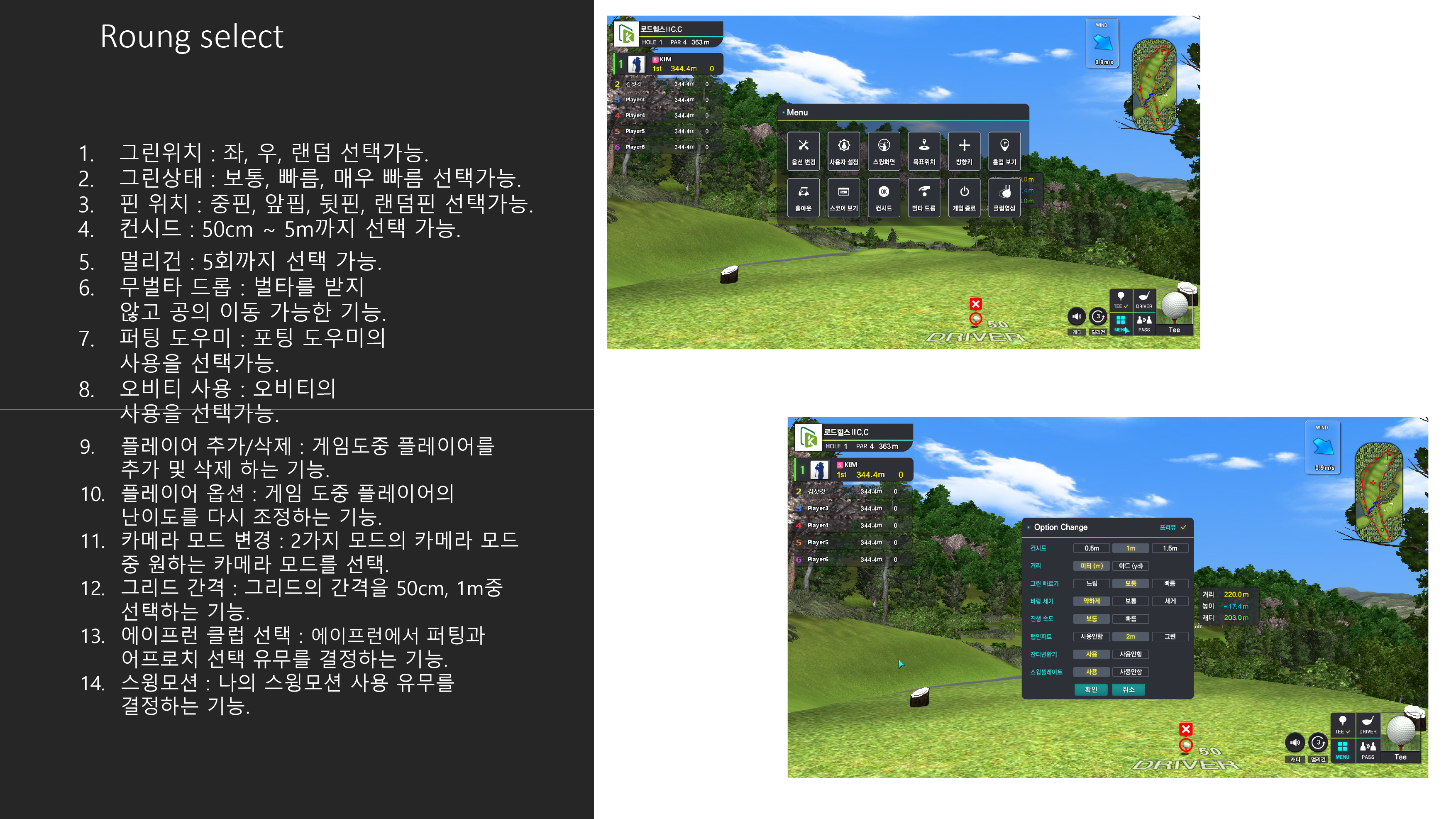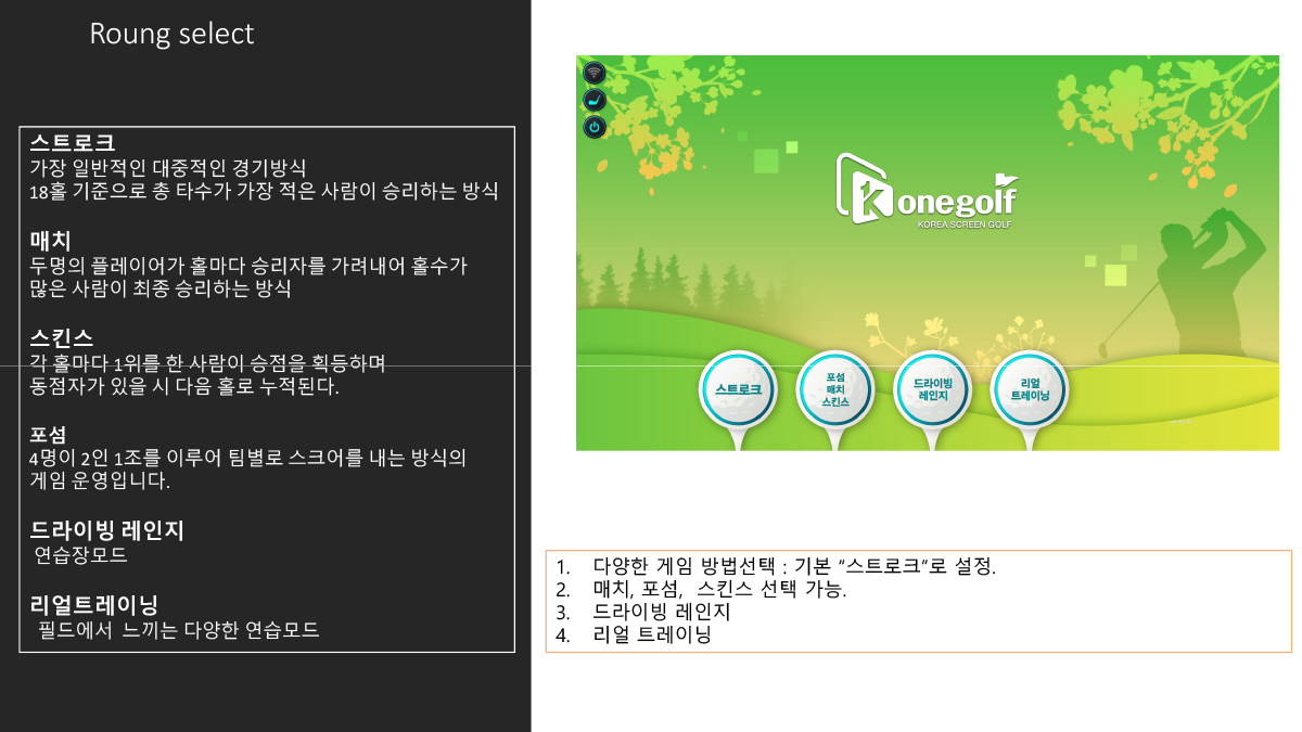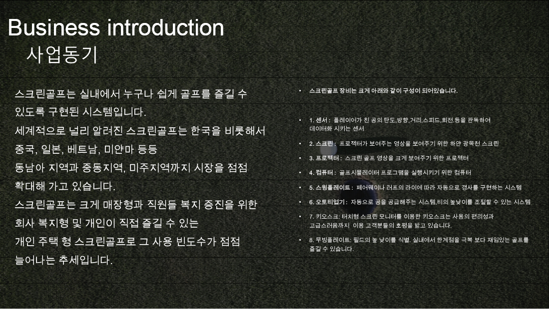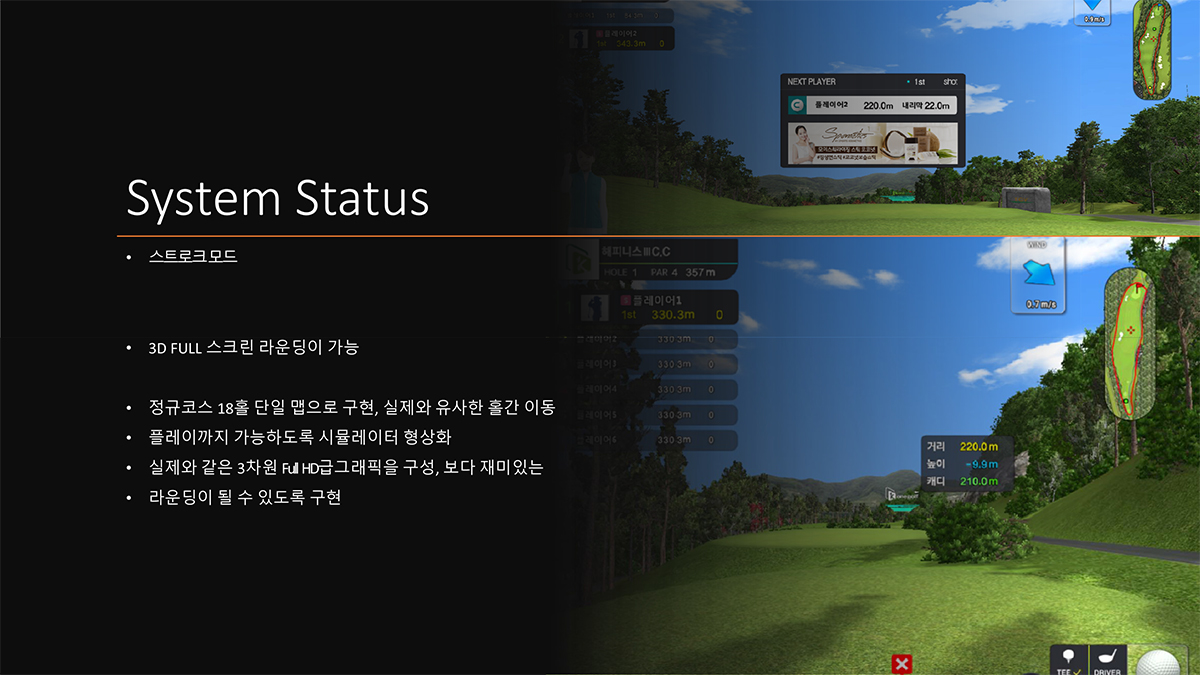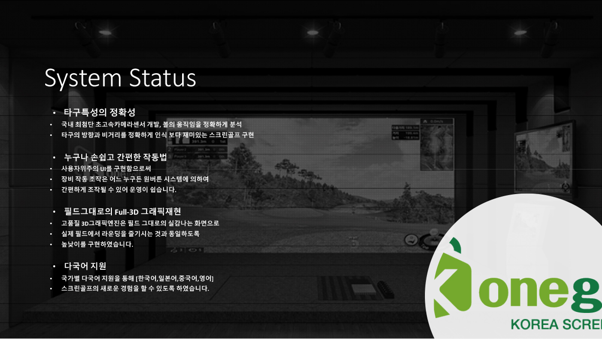 스크린골프는 실내에서 누구나 쉽게 골프를 즐길 수 있도록 구현된 시스템입니다.