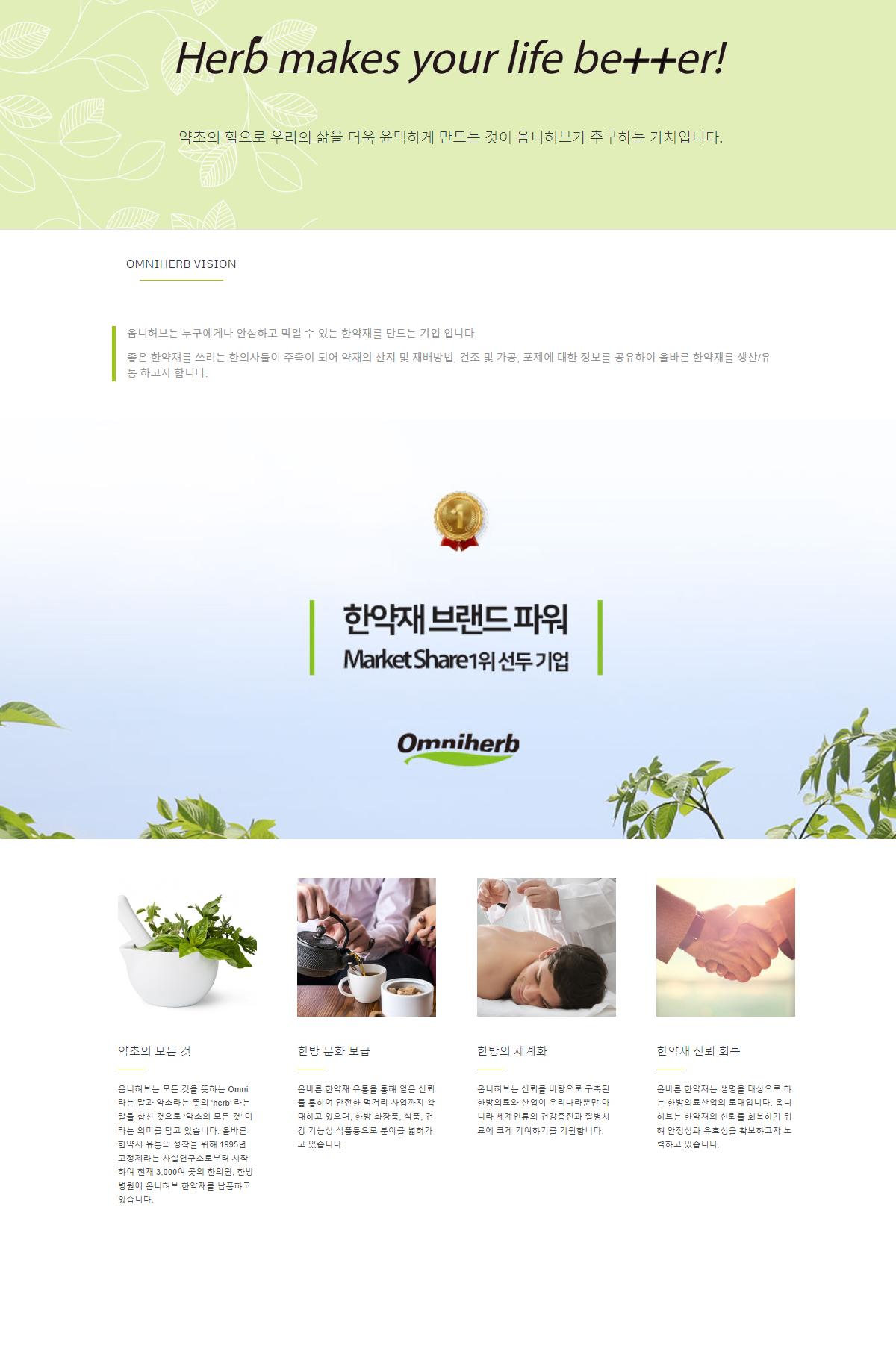 약초의 힘으로 우리의 삶을 더욱 윤택하게 만드는 것이 옴니허브가 추구하는 가치입니다.
