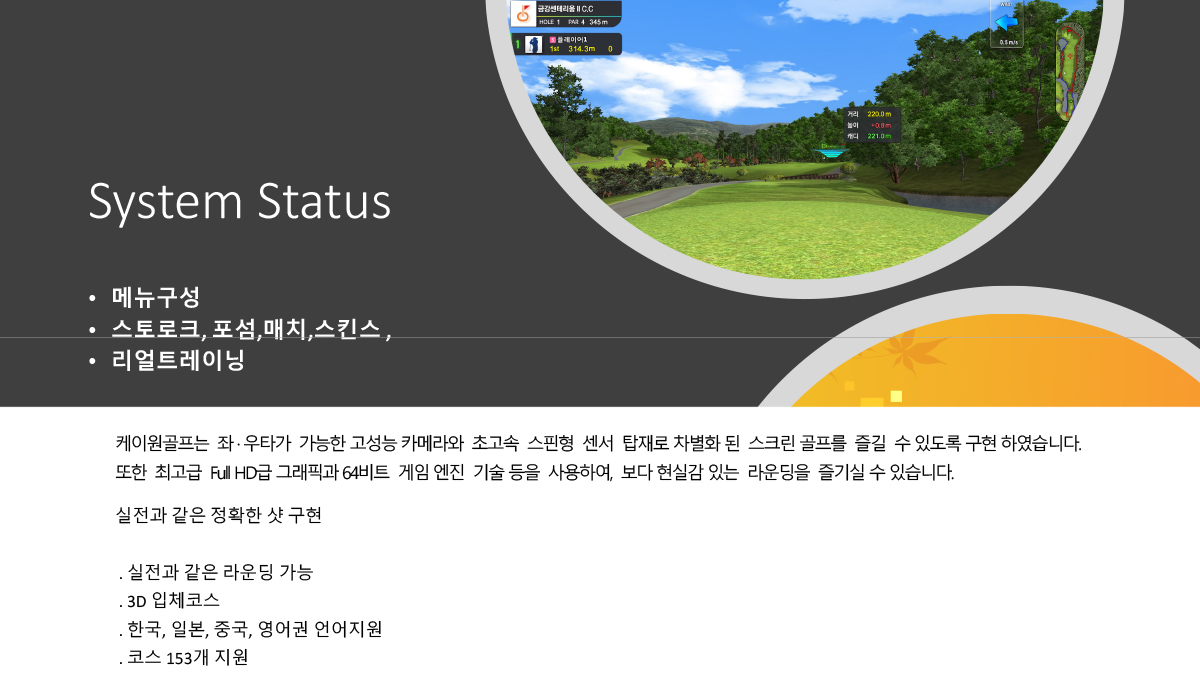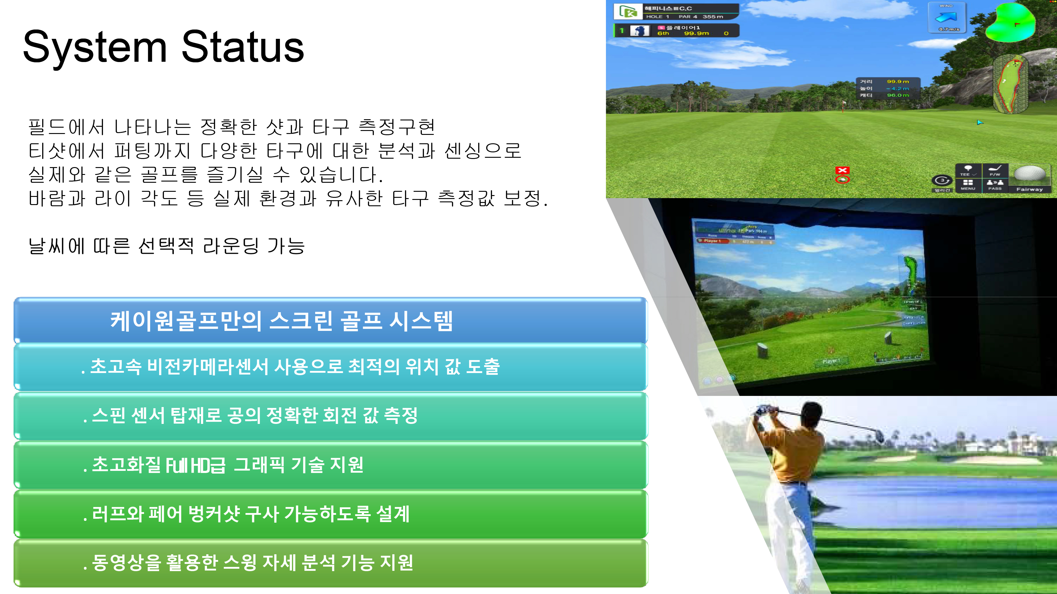 스크린골프는 실내에서 누구나 쉽게 골프를 즐길 수 있도록 구현된 시스템입니다.